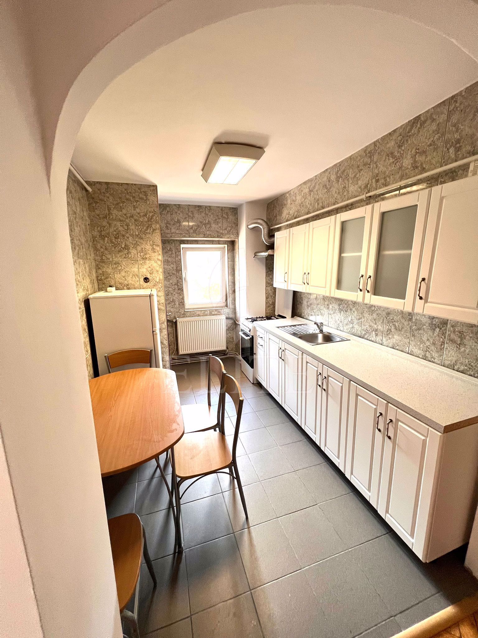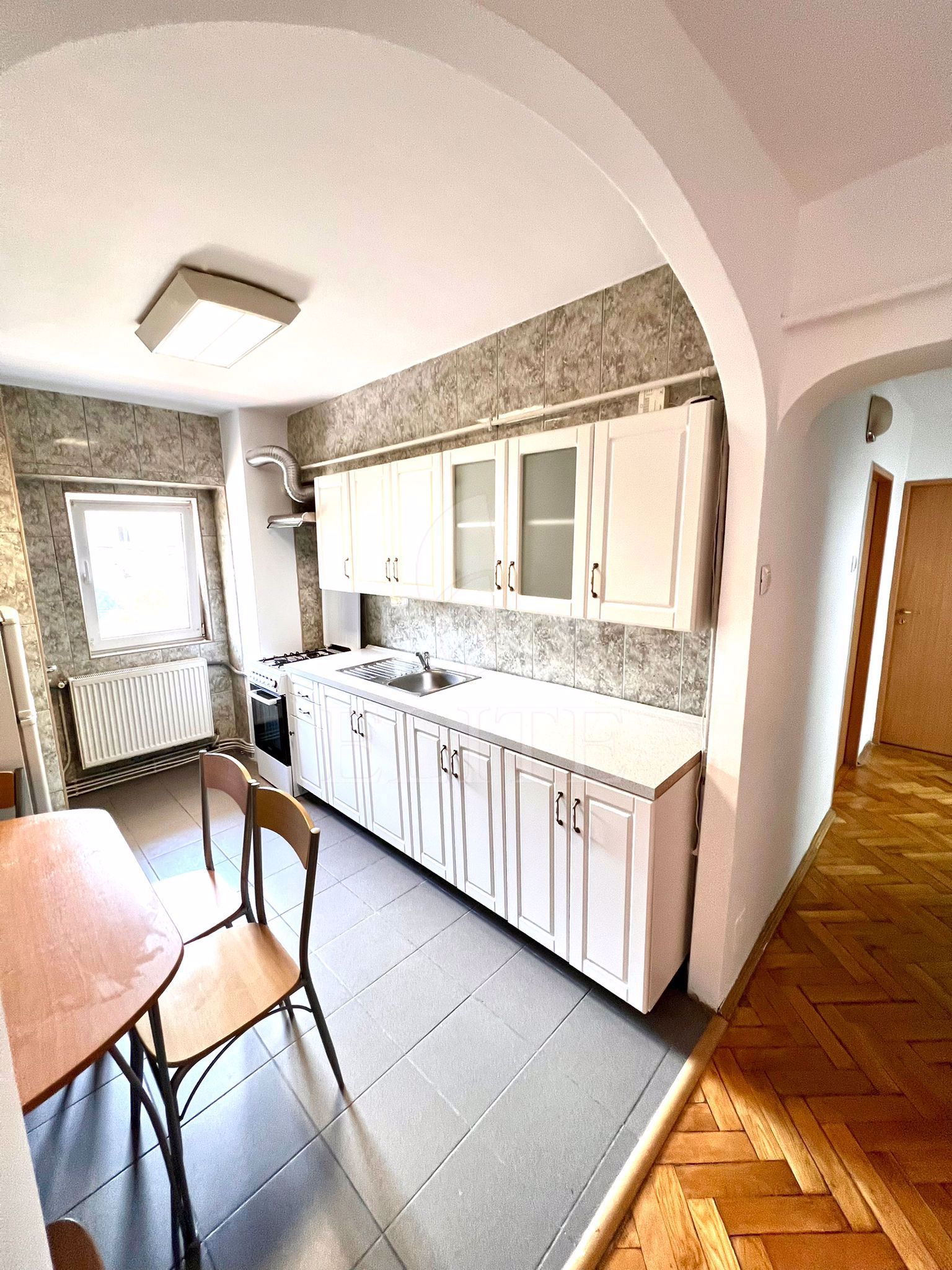ELITE va ofera spre inchiriere apartament cu 3 camere, situat in cartierul GHEORGHENI zona str. Nicolae Titulescu, fiind orientat sud. Apartamentul are o suprafata utila de 65 mp si este pozitionat la etajul 2, in bloc apartamente, cu izolație exterioară. Este un apartament decomandat, confort 1, cu bucatarie separata, 2 bai, 2 balcoane. In interior este finisat clasic.Se inchiriaza mobilat complet, clasic. Imobilul dispune si de centrală proprie,ferestre termopan,parchet lemn masiv,faianta/gresie modernă,utilat complet,usa de intrare metalica. Apartamentul face impresie buna, e luminos si ingrijit. Peretele dintre hol si bucatarie a fost desfintat. Parchetul e in stare buna. E situat in imediata apropiere a mijloacelor de transport in comun, a magazinelor si la cca 5 minute pietonale fata de P-ta. Cipariu. Ideal locuinta.