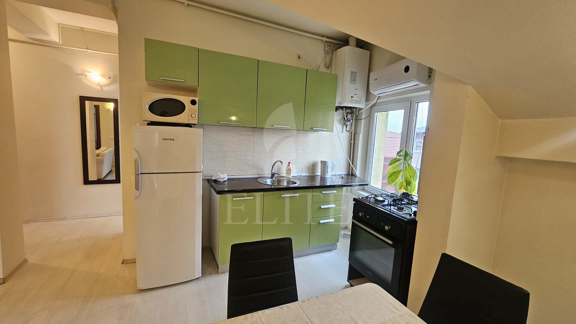 ELITE va ofera spre inchiriere apartament cu 3 camere in construcție nouă, situat in cartierul ZORILOR zona str. Padurii. Apartamentul are o suprafata utila de 60 mp si este pozitionat la ultimul nivel, in bloc apartamente cu regim de inaltime D+P+2E+M, construit in 2013, cu izolație exterioară. Este un apartament semidecomandat, confort 1; are hol acces, living impreuna cu bucatarie open space, doua dormitoare, 1 baie. Este foarte luminos datorita expunerii catre sud-vest. In interior este finisat modern. Se inchiriaza mobilat si utilat complet. Imobilul dispune si de centrală proprie, aer condiționat,ferestre termopan,parchet laminat,faianta/gresie modernă,usa de intrare metalica. Apartamentul este dotat cu urmatoarele electrocasnice: mașină de spălat rufe, frigider, aragaz. Apartamentul este localizat in vecinatatea mijloacelor de transport in comun. Are ca si vecinatati: blocuri,spatii verzi,magazin Carrefour. Imobilul din care face parte e retras de la strada principala, dar la cca 5 minute pietonale fata de Spitalul de Recuperare.