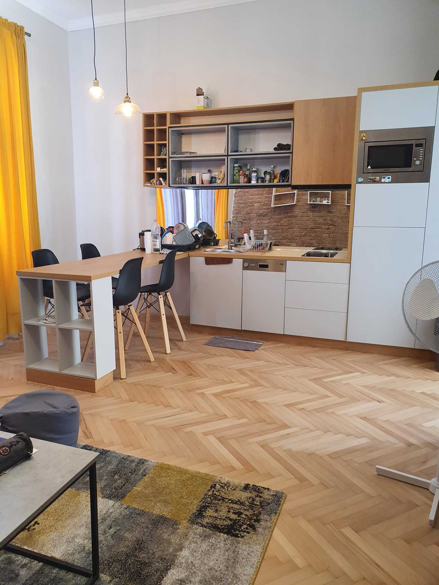 Elite ofera spre vanzare apartament cu 2 camere in cartierul CENTRAL. Imobilul este situat in zona Motilor, in constructie veche, este cu trecere si are suprafata utila de 47 mp. Imobilul are o baie si este orientat est. Este finisat modern, are parchet din lemn masiv, faianta/gresie moderna, tamplarie exterior termopan, tamplarie interior lemn, usa intrare metalica. Locuinta are centrala termica. Dispune de parcare. Imobilul este mobilat complet, cu mobilier modern si este utilat complet. Apartamentul este compartimentat in hol de intrare, camera de zi impreuna cu bucataria, dormitor tip nisa, baie. Este finisat foarte frumos, se vinde mobilat si utilat complet. Apartamentul este situat in curte, in imediata apropiere a complexului Platinia, a parcului central si la 2 statii de transport fata de piata Unirii.