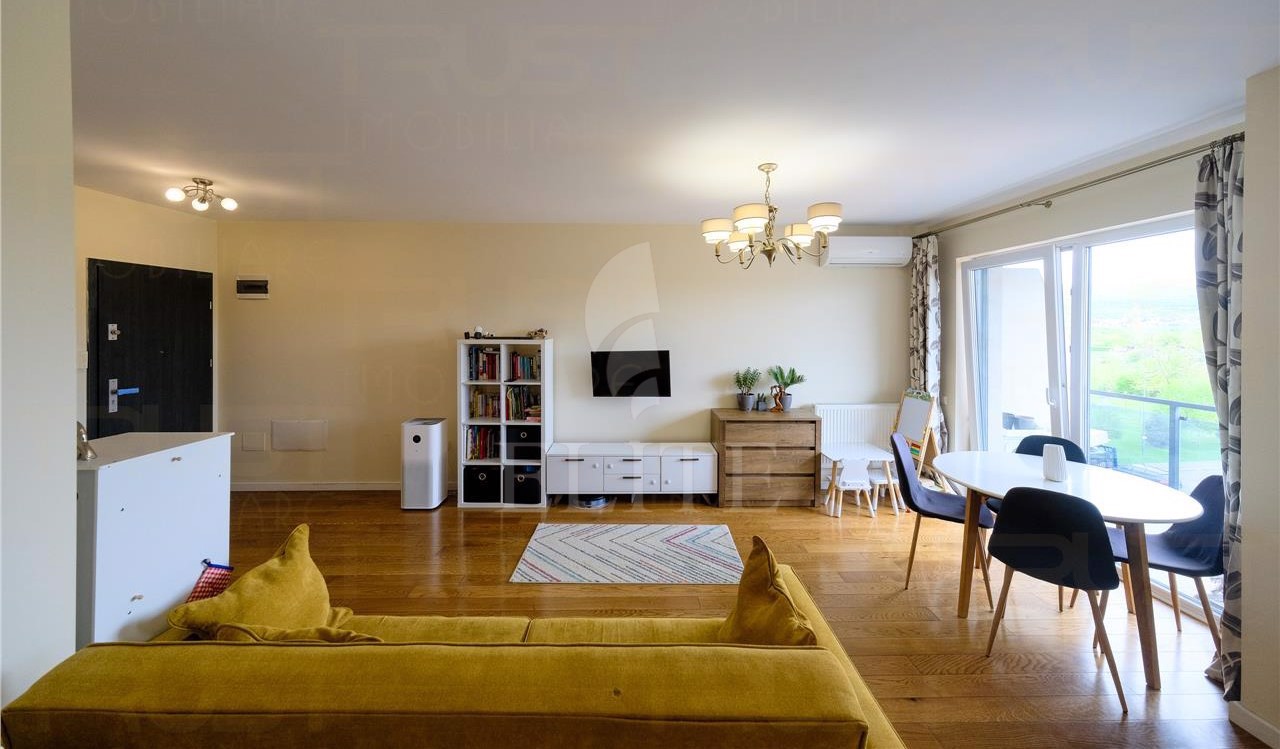 ELITE va ofera spre vanzare apartament cu 2 camere in construcție nouă, situat in cartierul GHEORGHENI in zona IULIUS MALL, fiind orientat vest. Apartamentul are o suprafata utila de 57 mp si este pozitionat la etajul 4, in bloc apartamente cu regim de inaltime PARTER PLUS 10 ETAJE, construit in 2021, cu izolație exterioară. Este un apartament semidecomandat, confort sporit, cu bucatarie open space, o baie, un balcon. In interior este finisat modern.Se vinde mobilat complet. Imobilul dispune si de centrală proprie,ferestre termopan,parchet laminat,faianta/gresie modernă,usa de intrare metalica. Un avantaj al acestui imobil este ca dispune de garaj subteran.