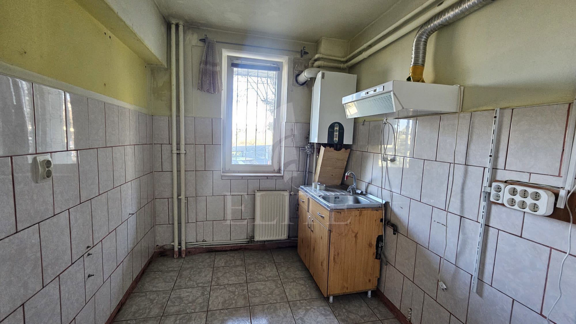 ELITE va ofera spre vanzare apartament cu 2 camere, situat in cartierul GHEORGHENI zona INTERSERVISAN. Apartamentul are o suprafata utila de 43 mp si este pozitionat la parter inalt, in bloc apartamente cu regim de inaltime S+P+10E. Este un apartament semidecomandat, confort 1; are hol acces, bucatarie separata, sufragerie, dormitor, o baie, un balcon, debara. Sufrageria si bucataria sunt spre est, iar dormitorul e spre nord. In interior este finisat clasic. Necesita investitii pentru ocupare. Imobilul dispune si de centrală proprie, ferestre termopan, parchet laminat, faianta si gresie clasică, usa de intrare lemn. Proprietatea este ocupabila imediat. Apartamentul este localizat in vecinatatea mijloacelor de transport in comun. Blocul din care face parte e in imediata apropiere a complexului Mercur, a parcului Detunata si la 3 minute pietonale fata de Interservisan.