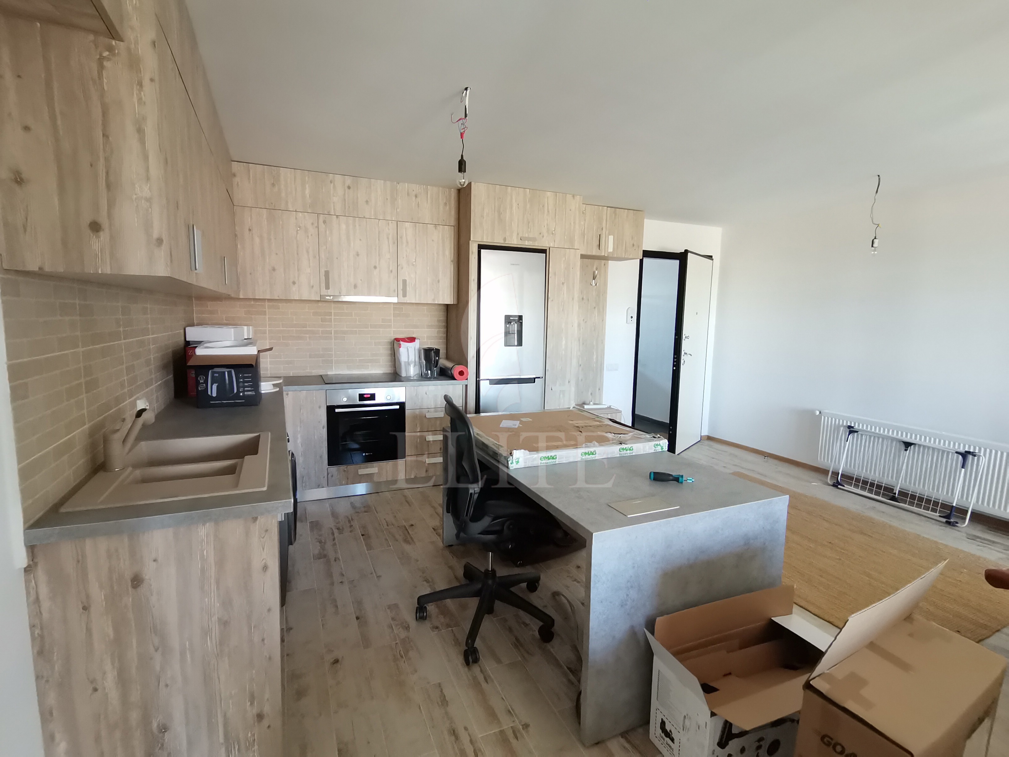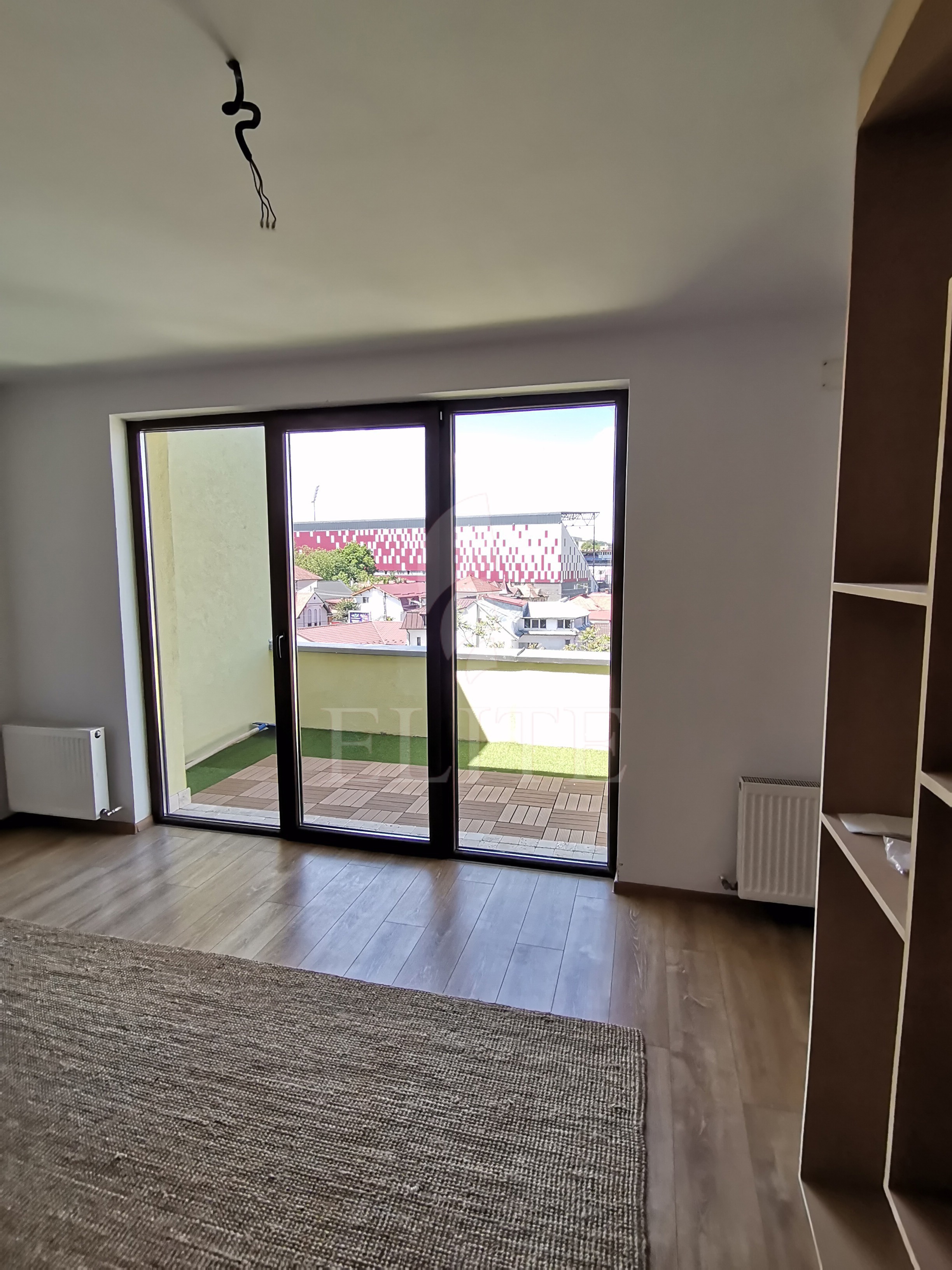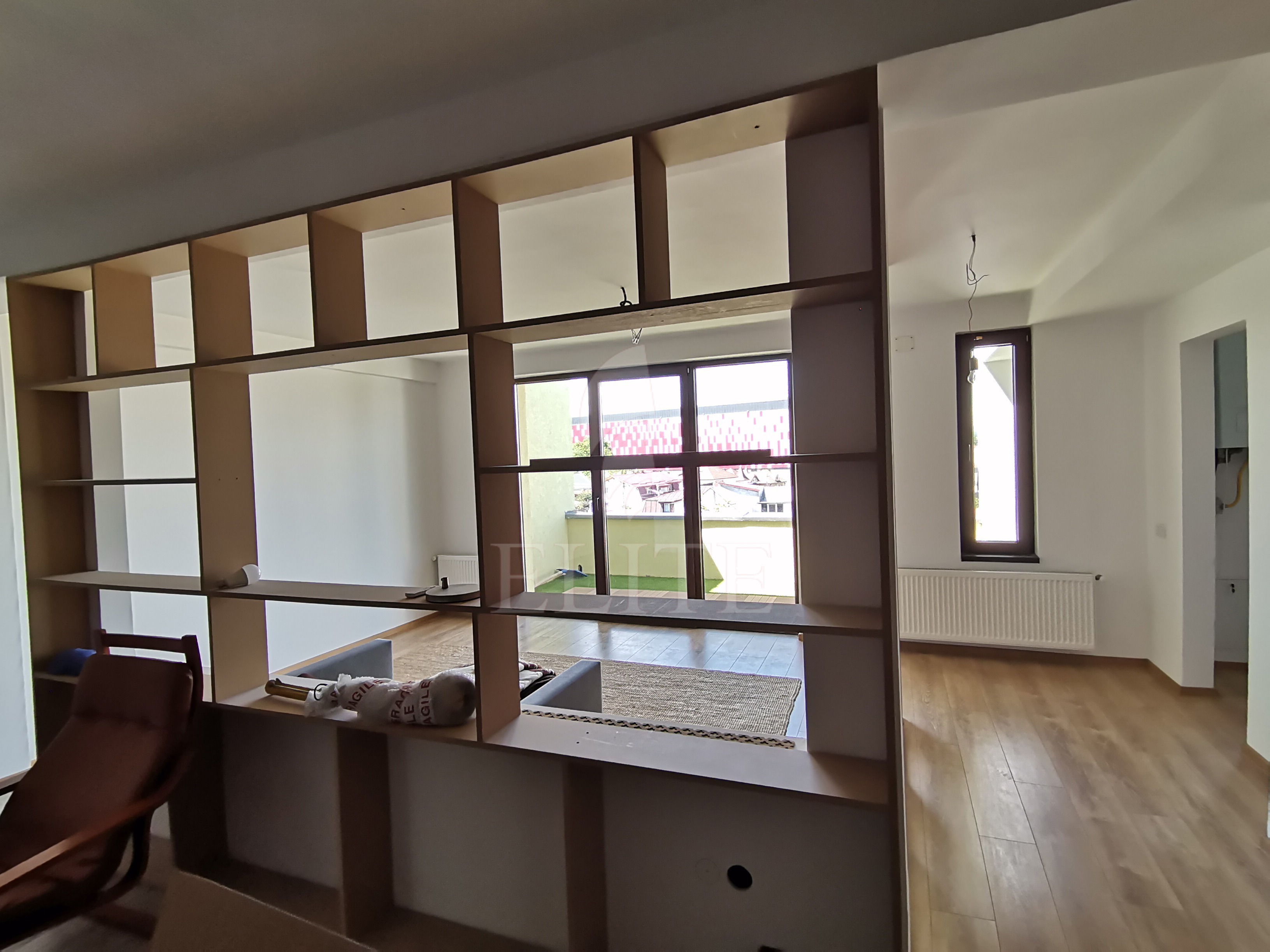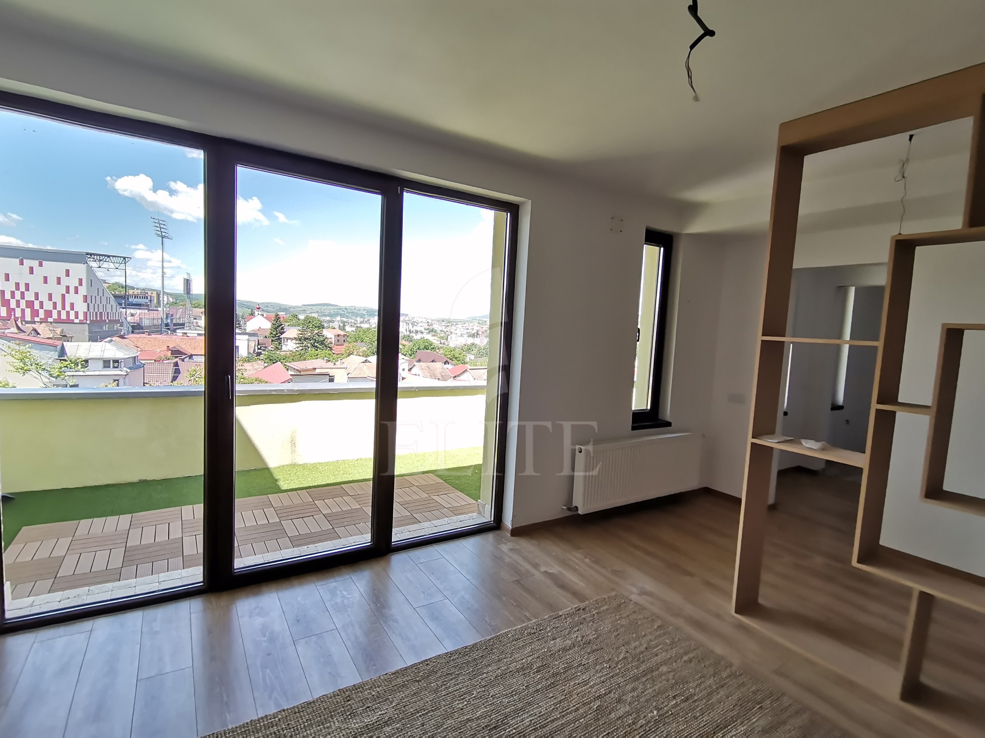 Elite Imobiliare va ofera spre vanzare un apartament cu 2 camere in construcție nouă, situat in cartierul GRUIA, zona Sapte Strazi, avand orientare vestica Apartamentul are o suprafata utila de 56 mp si este pozitionat la etajul 4, in bloc de apartamente cu regim de inaltime P+4E, construit in anul 2013, avand izolație exterioară. Apartamentul are o compartimentare open-space, cu zona de zi si bucatarie la intrare si un dormitor, o baie si un dressing.Terasa apartamentului este de 22 mp si beneficiaza de o panorama frumoasa asupra cartierulul si a zonei de vest a orasului. Interiorul este finisat recent, confortul termic este asigurat de centrala termica proprie, are ferestre cu geam termopan, parchet laminat, faianta si gresie modernă, usa de intrare metalica. Apartamentul este dotat cu urmatoarele electrocasnice: cuptor microunde, mașină de spălat rufe, frigider, cuptor, plită.Bucataria este mobilata complet. Avantajele acestui imobil sant urmatoarele: garaj subteran, lift panoramic, interfon.Apartamentul este localizat la 5 minute de mers pe jos de centrul orasului, intr-o zona linistita de case si imobile mici.Este retras de la strada, spre curtea interioara.