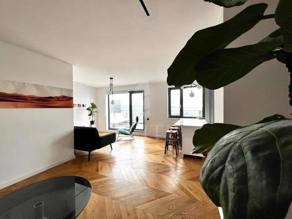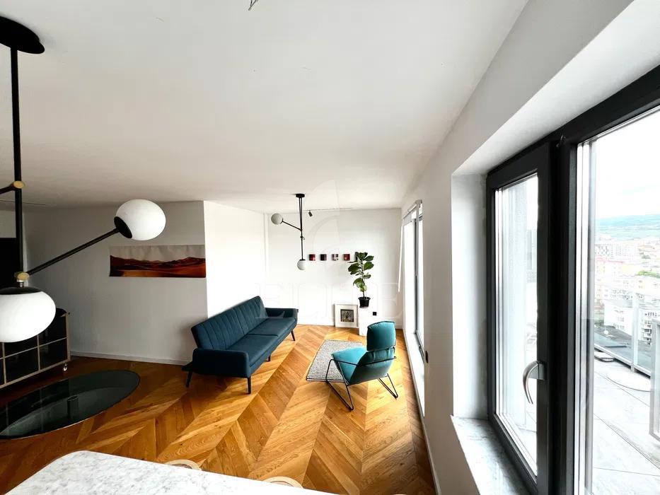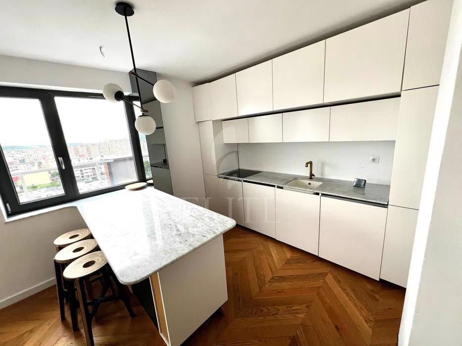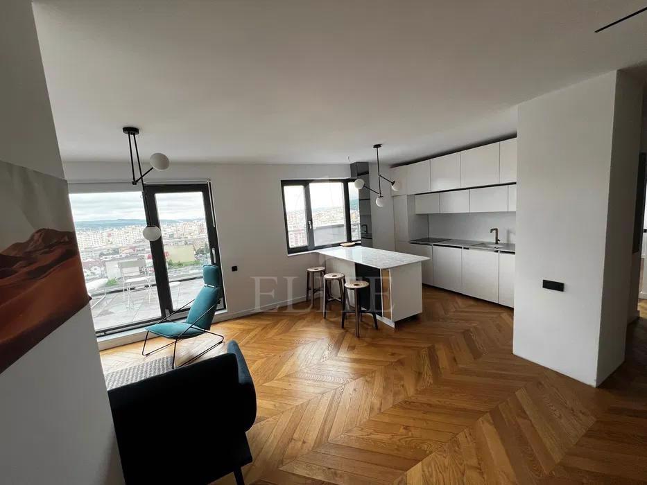 ELITE va ofera spre vanzare apartament cu 2 camere in construcție nouă, situat in cartierul MARASTI zona MARASTI CENTRAL. Apartamentul are o suprafata utila de 60 mp si este pozitionat la etajul 10, in bloc apartamente, construit in 2019, cu izolație exterioară. Este un apartament semidecomandat, confort sporit, cu bucatarie open space, o baie, un balcon. In interior este finisat modern.Se vinde mobilat complet. Imobilul dispune si de centrală proprie,ferestre termopan,parchet lemn masiv,faianta/gresie modernă,usa de intrare metalica. Un avantaj al acestui imobil este ca dispune de garaj subteran. Apartamentul este situat in zona buna aproape de mijloacele de transport in comun si de centrul orasului. Este compartimentat in living impreuna cu bucataria open space, baie hol, dormitor si o terasa panoramica de 22 mp. Parcarea subterana este inclusa in pret. Apartamentul este finisat modern.