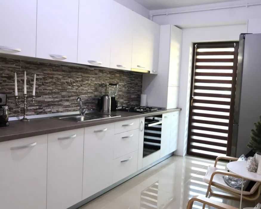 Elite ofera spre vanzare apartament cu 3 camere in cartierul BUNA ZIUA. Imobilul este situat in zona Buna Ziua, in constructie noua, este cu trecere si are suprafata utila de 63 mp. Imobilul are o baie, un balcon si este orientat vest. Este finisat modern, are parchet laminat, faianta/gresie moderna, tamplarie exterior termopan, tamplarie interior lemn, usa intrare metalica. Locuinta are centrala termica si este izolata termic exterior. Dispune de parcare. Imobilul este mobilat complet, cu mobilier modern si este utilat complet. Blocul este din 2020.Terasa este de 15 mp.