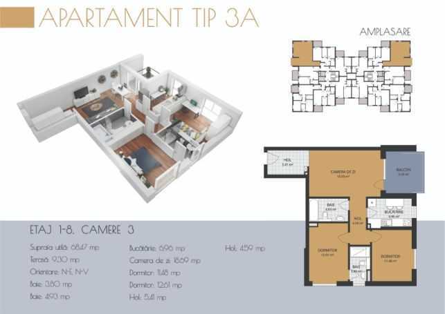 Elite ofera spre vanzare apartament cu 3 camere in cartierul ANDREI MURESANU. Imobilul este situat in zona Buna Ziua, in constructie noua, este decomandat si are suprafata utila de 68 mp. Imobilul are 2 bai, un balcon si este orientat est vest. Este finisat modern, are parchet laminat, faianta/gresie moderna, tamplarie exterior termopan, tamplarie interior lemn, usa intrare metalica. Locuinta are centrala termica si este izolata termic exterior. Are garaj sub bloc.