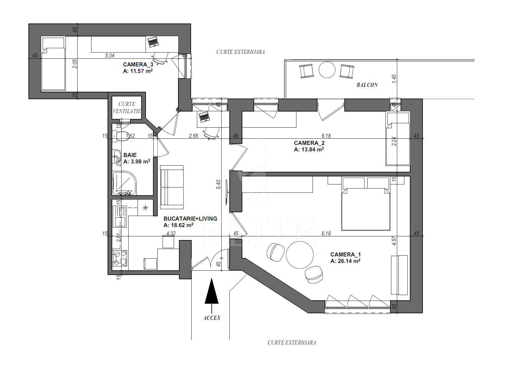 ELITE va ofera spre vanzare apartament cu 3 camere, situat in cartierul CENTRAL zona PIATA UNIRII. Apartamentul are o suprafata utila de 79 mp si este pozitionat la etajul 3, in bloc apartamente, neizolat. Este un apartament decomandat, confort 1, cu bucatarie separata, o baie, un balcon. In interior este finisat clasic. Imobilul dispune si de centrală proprie,ferestre termopan,parchet lemn masiv,faianta/gresie clasică,usa de intrare metalica. Apartamentul este situat intr-o zona ultracentrala in centrul istoric al Clujului. Este compartimentat in living open space impreuna cu bucatarie plus 3 dormitoare separate, 1 baie si un balcon. Este ideal locuinta sau investitie. Blocul este prevazut cu lift.