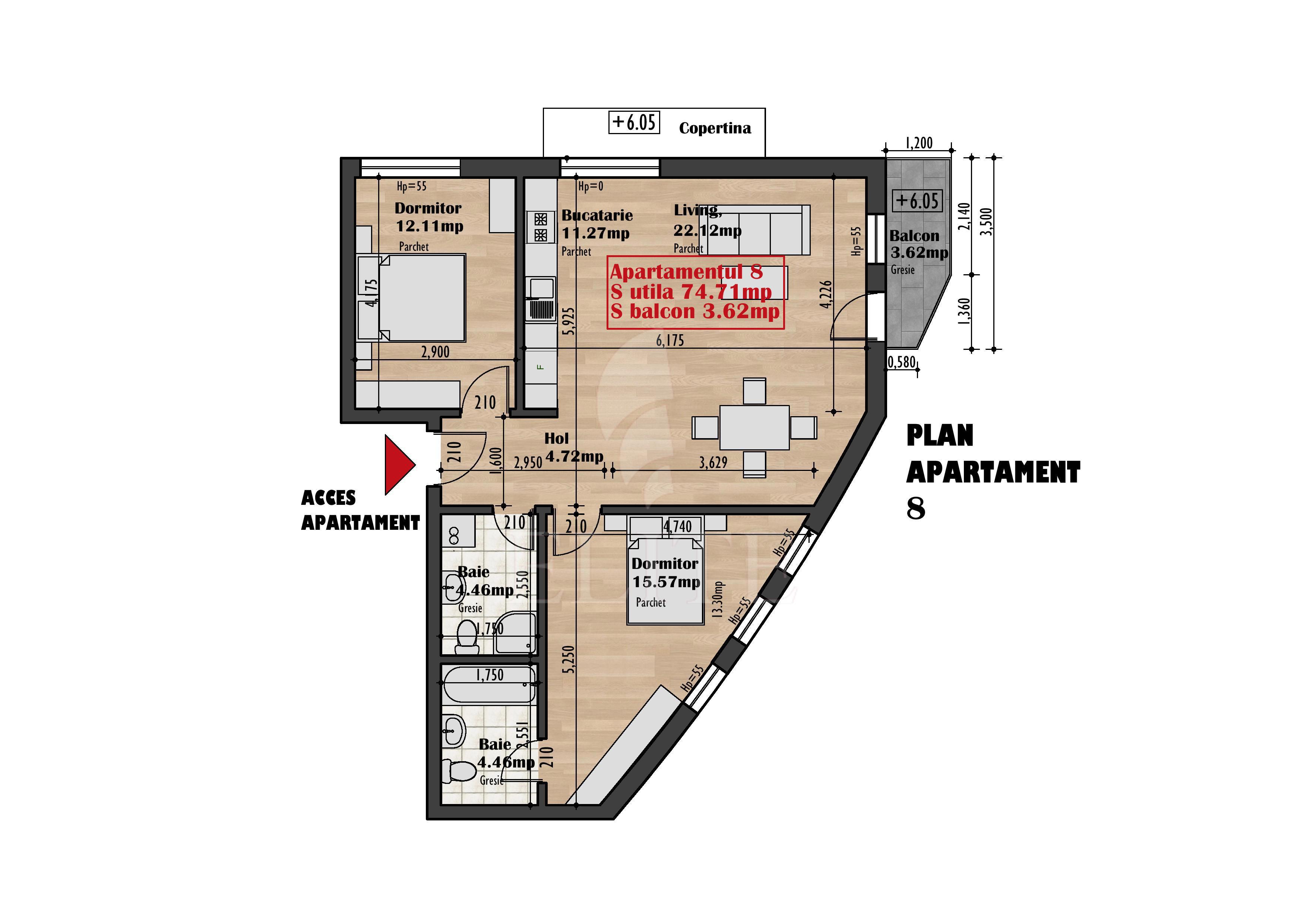 ELITE va ofera spre vanzare apartament cu 3 camere in construcție nouă, situat in cartierul IRIS zona Iris, fiind orientat est vest. Apartamentul are o suprafata utila de 75 mp si este pozitionat la etajul 1, in bloc apartamente, cu izolație exterioară. Este un apartament semidecomandat, confort sporit, cu bucatarie separata, 2 bai, un balcon. In interior este semifinisat. Imobilul dispune si de centrală proprie,ferestre termopan,șapă,usa de intrare metalica. Parcarea subterana este 12.000 euro. Pretul apartamentului si al parcarii este plus tva.