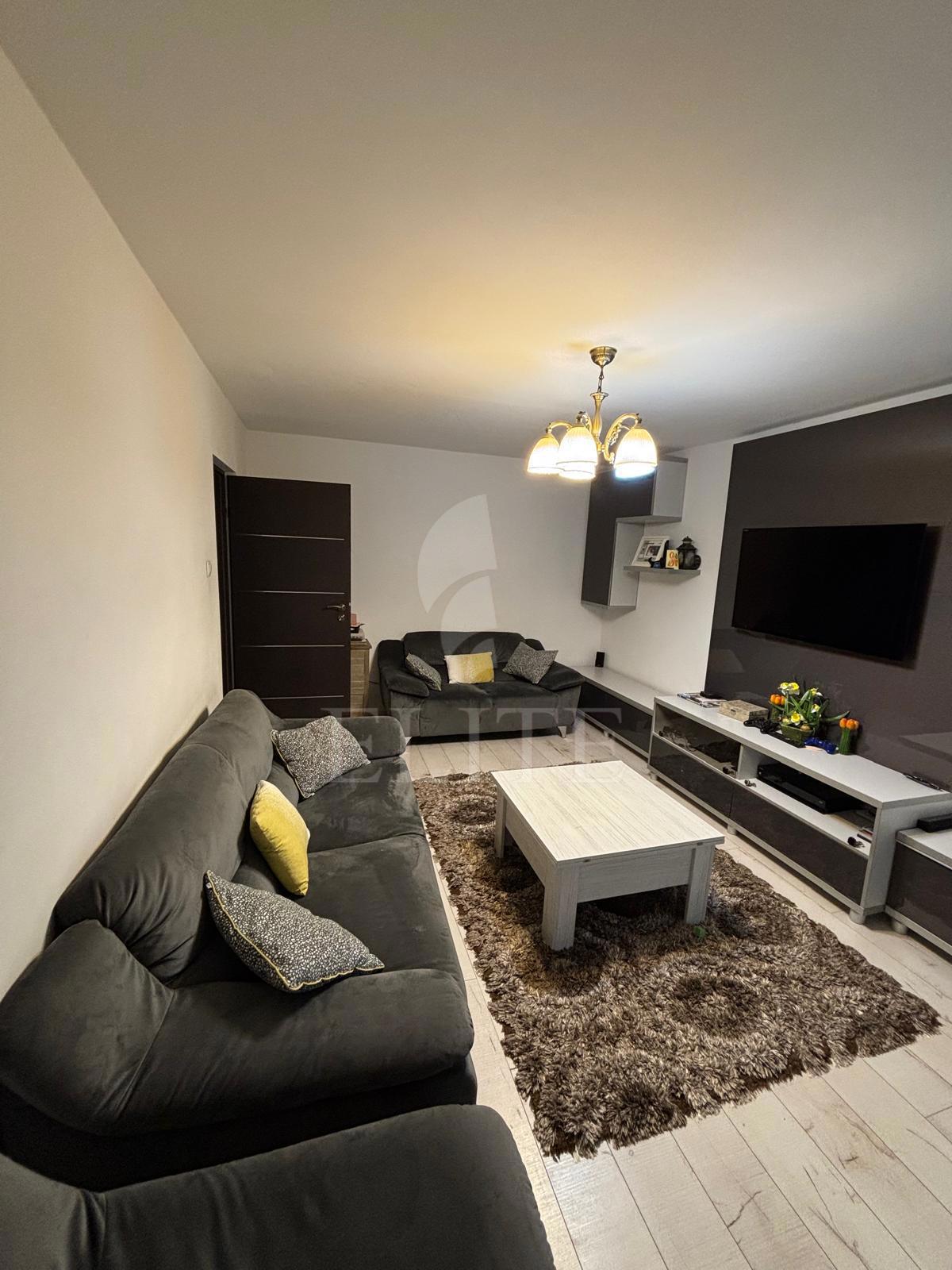 ELITE va ofera spre vanzare apartament cu 3 camere, situat in zona INTRE LACURI. Apartamentul are o suprafata utila de 65 mp si este pozitionat la etajul 2, in bloc apartamente, cu izolație exterioară. Este un apartament decomandat, confort 1; are hol acces, sufragerie, 2 dormitoare, cu bucatarie separata, 2 bai, un balcon. Bucataria si sufrageria sunt spre Est, iar celelalte doua camere sunt spre Vest. In interior este finisat modern. Se vinde mobilat si utilat complet , modern. A fost desfintat peretele dintre hol si bucatarie si peretele dintre balcon si camera. Dispune de pivnita la demisolul cladirii. Incalzirea este efectuata de centrală proprie; sunt ferestre termopan, parchet laminat, faianta si gresie modernă, usa de intrare metalica. Proprietatea este ocupabil imediat. Are loc de parcare exterior de la Primaria Cluj.