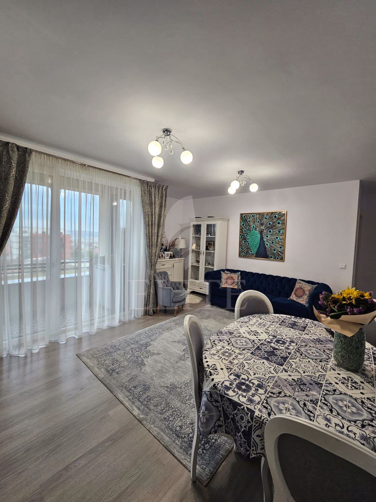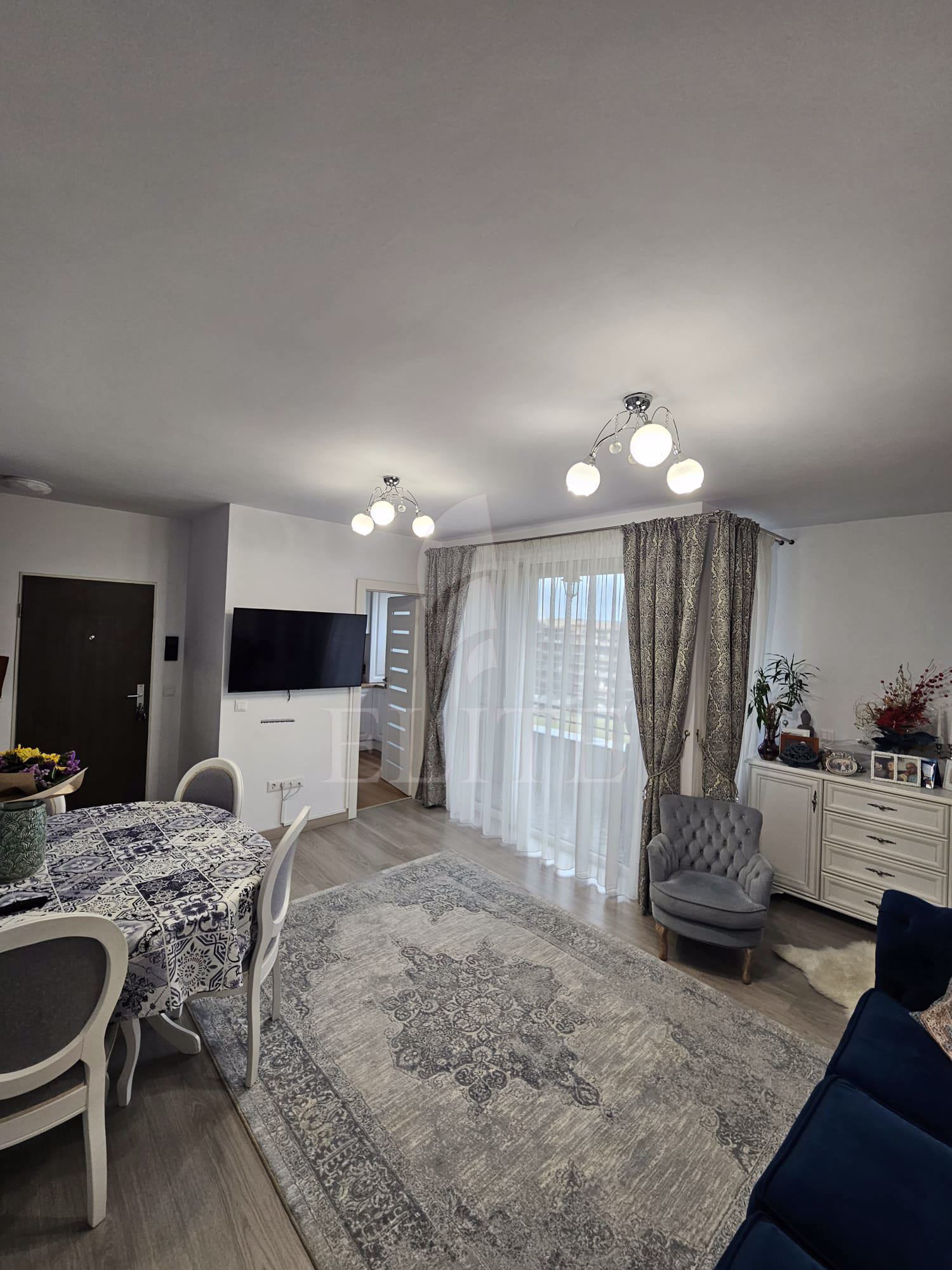 ELITE va ofera la vanzare, in EXCLUSIVITATE, apartament cu 3 camere in construcție nouă, situat in apropierea centrului comercial Sigma Center, in complexul Citadinia din Andrei Muresanu Sud. Apartamentul are o suprafata utila de 66.3 mp si este pozitionat la etajul 2, in bloc apartamente cu regim de inaltime D+P+4E+5ER, construit in 2018. Beneficiaza de certificat energetic clasa A. Imobilul este compus din: hol acces, living, bucatarie separata, un balcon cu acces din bucatarie si sufragerie, doua dormitoare, doua bai si un balcon cu acces din unul dintre dormitoare. Unul dintre balcoane are panorana superba catre oras, iar celalalt catre curtea interioara a blocurilor. Imobilul dispune de centrală proprie si încălzire în pardoseală. Toate finisajele si amenajarile din apartament au fost atent selectionate si gandite sa asigure confortul vietii de zi cu zi. Se vinde mobilat, cu mobila personalizata de calitate superioara. Apartamentul este dotat cu urmatoarele electrocasnice: mașină de spălat rufe, mașină de spălat vase, frigider, televizor, cuptor, plită. Apartamentul este localizat in vecinatatea mijloacelor de transport in comun. Are ca si vecinatati: blocuri, case, magazine. Un avantaj al acestui imobil este ca dispune de 2 locuri de parcare in subteranul cladirii, la pretul de 15000 euro fiecare. Imobilul din care face parte e retras de la strada principala, intr-o oaza de verdeata, dar cu conexiune facila catre calea Turzii si cartierul Andrei Muresanu. Apartamentul este ideal pentru locuit sau investie.