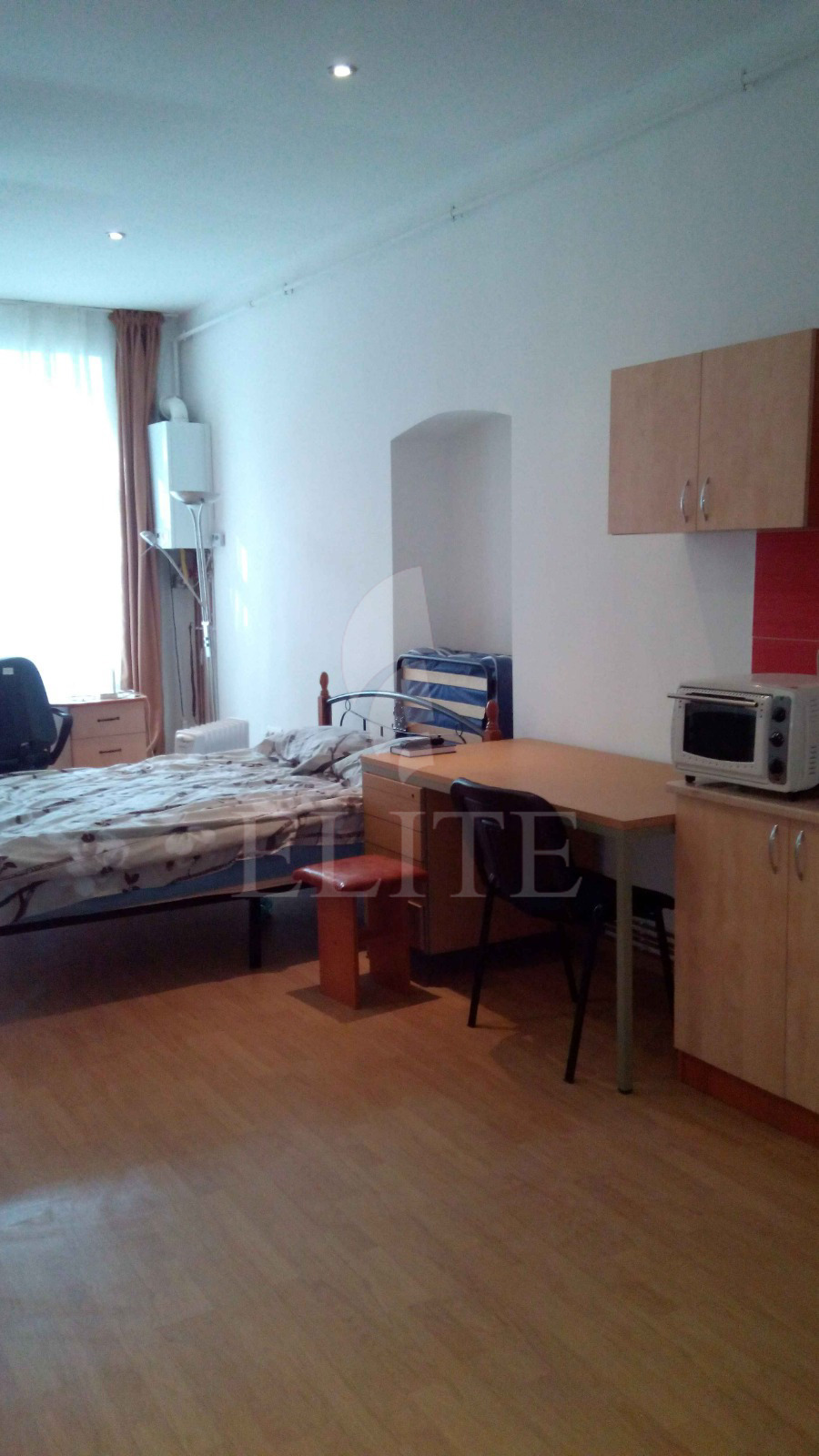 Elite ofera spre vanzare apartament cu 1 camera in cartierul CENTRAL. Imobilul este situat in zona THE OFFICE, in constructie veche, este cu trecere si are suprafata utila de 38 mp. Imobilul are o baie si este orientat EST. Este finisat clasic, are parchet din lemn masiv, faianta/gresie moderna, tamplarie exterior termopan, tamplarie interior lemn, usa intrare metalica. Locuinta are centrala termica. Imobilul este mobilat partial, cu mobilier clasic si este utilat complet.