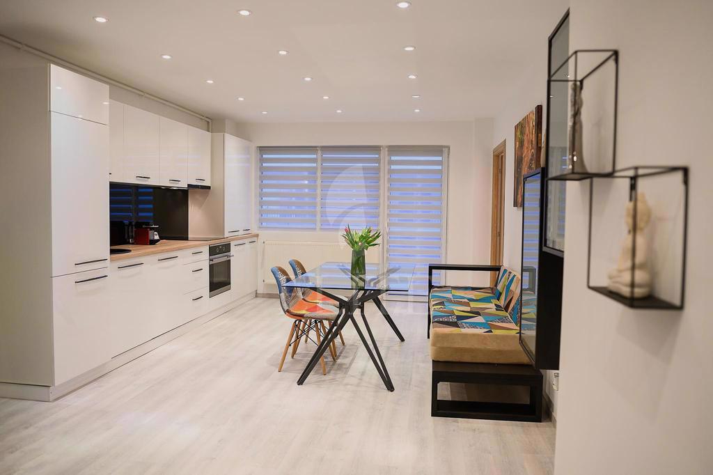 ELITE offers for sale apartment with 3 rooms in new construction, located in the area Baciu Petrom. The apartment has an usable area of 68 mp and is positioned on the floor 6, in apartment block, built in 2016, exterior insulation. It is an detached apartment, confort 1, with separate kitchen, 2 bathrooms, one balcony. The interior is lux/ultrafinisat. The property also has own central,double glazing windows, laminate flooring,modern tile/sandstone,metal front door. The apartment is equipped with the following appliances: washing machine, dishwasher, refrigerator, TV, oven, hob.The apartment is located in the vicinity of public transport da. An advantage of this property is that it has underground garage.
