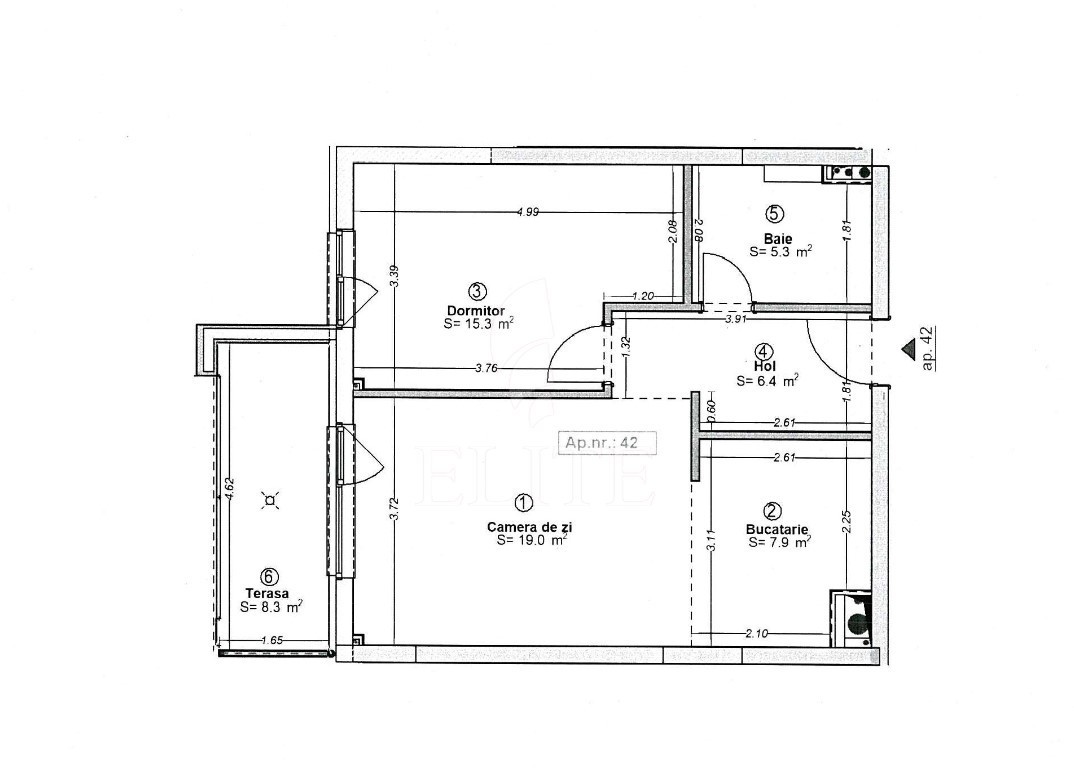 ELITE offers for sale apartment with 2 rooms in new construction, located in the neighborhood MARASTI in the area Lidl. The apartment has an usable area of 54 mp and is positioned on the floor 2, in apartment block with height regime P+6, built in 2023, exterior insulation. It is an semi-detached apartment, confort 1, with separate kitchen, one bathroom, one balcony. The interior is semifinisat. The property also has own central,double glazing windows, metal front door. An advantage of this property is that it has under the block garage.