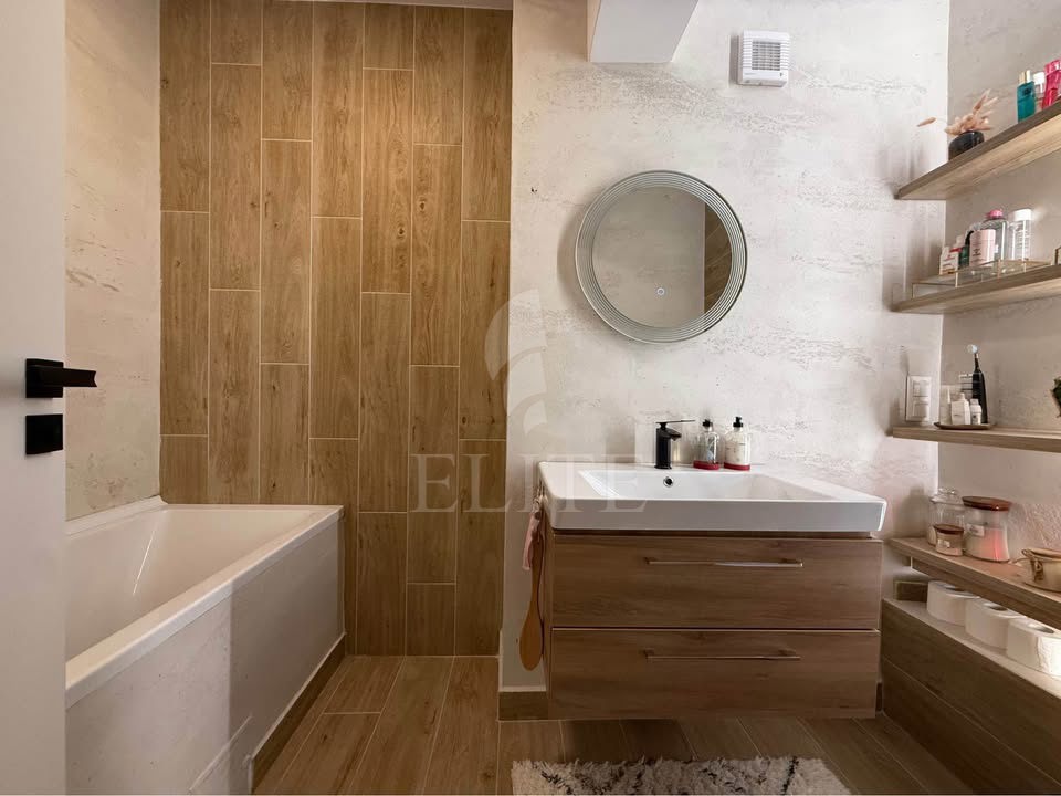 ELITE offers for sale apartment with 3 rooms in new construction, located in the neighborhood BUNA ZIUA in the area HOME GARDEN. The apartment has an usable area of 70 mp and is positioned on the floor 5, in apartment block, built in 2014, exterior insulation. It is an semi-detached apartment, confort 1, with open space kitchen, 2 bathrooms, 2 balconies. The interior is modern finish. The property also has own central,double glazing windows, laminate flooring,modern tile/sandstone,metal front door. An advantage of this property is that it has underground garage.