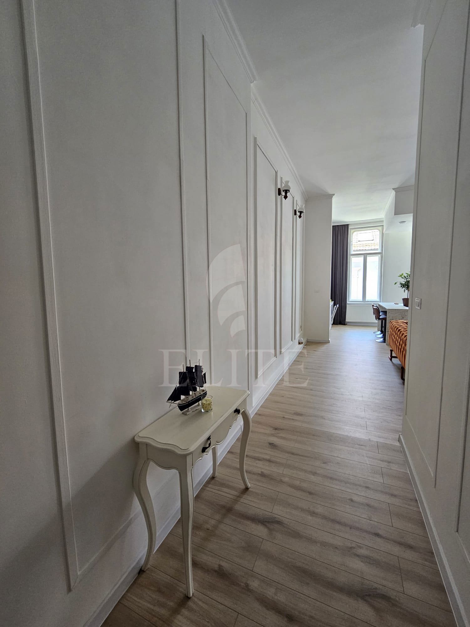 ELITE offers for sale apartment with 2 rooms, located in the neighborhood CENTRAL in the area CENTRALA. The apartment has an usable area of 81 mp and is positioned on the floor 1, in apartment block with height regime parter plus etaj plus pod, non-insulated. It is an detached apartment, confort increased, with separate kitchen, one bathroom. The interior is modern finish. The property also has own central,double glazing windows, laminate flooring,modern tile/sandstone,metal front door. An advantage of this property is that it has parking