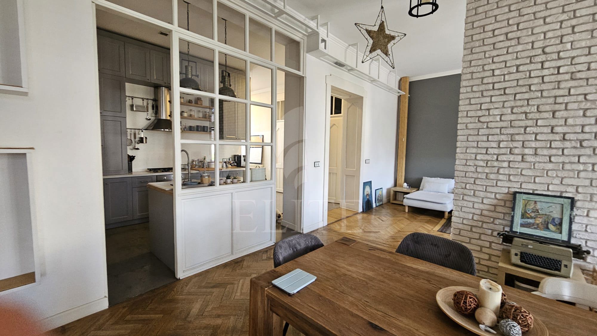 ELITE offers for sale apartment with 3 rooms, located in the neighborhood CENTRALA in the area SEMICENTRAL. The apartment has an usable area of 120 mp and is positioned on the floor 2, in apartment block, exterior insulation. It is an semi-detached apartment, confort increased, with separate kitchen, 2 bathrooms. The interior is modern finish. The property also has own central,double glazing windows, solid wood flooring,modern tile/sandstone,metal front door. An advantage of this property is that it has metal garage.