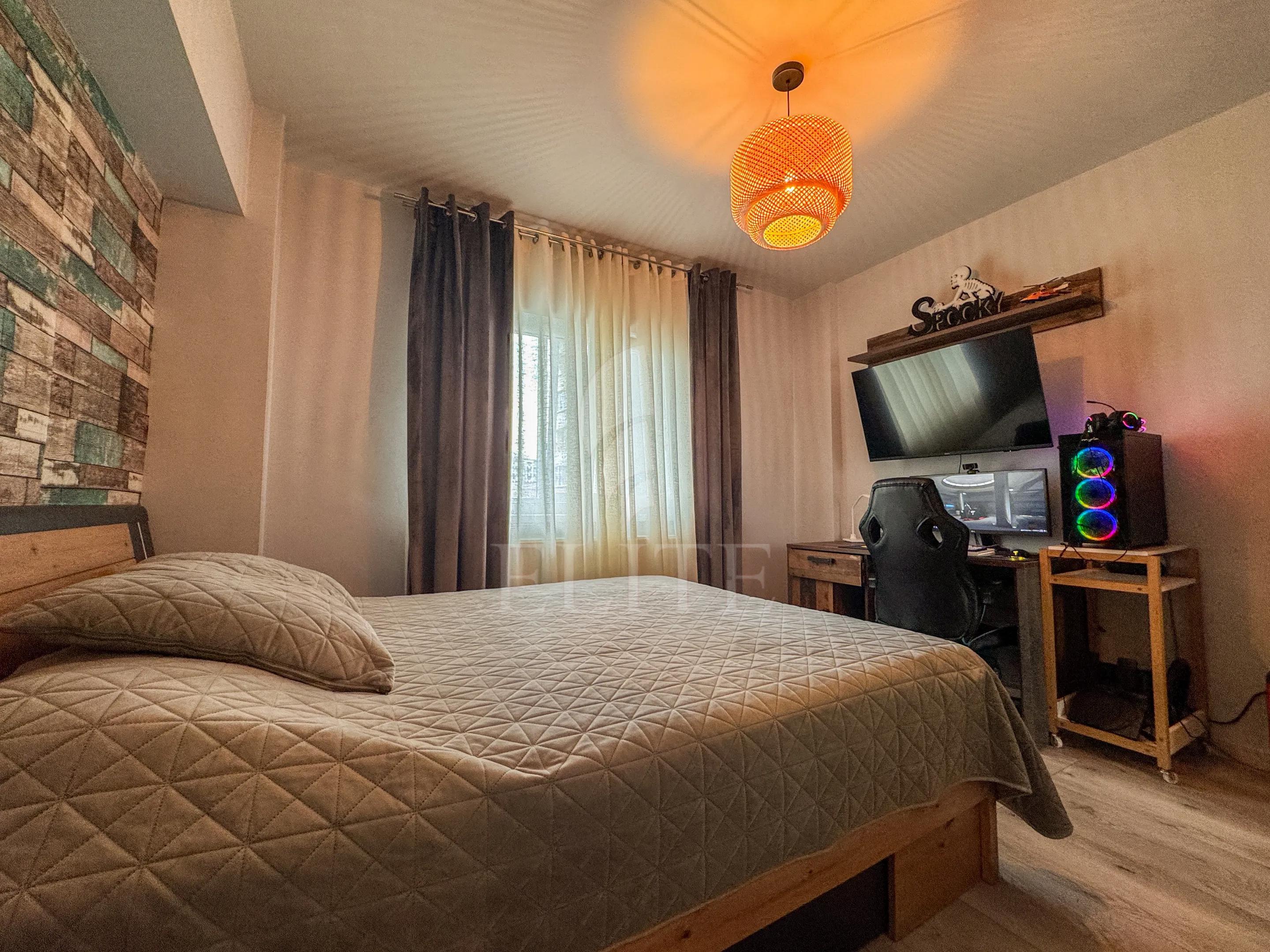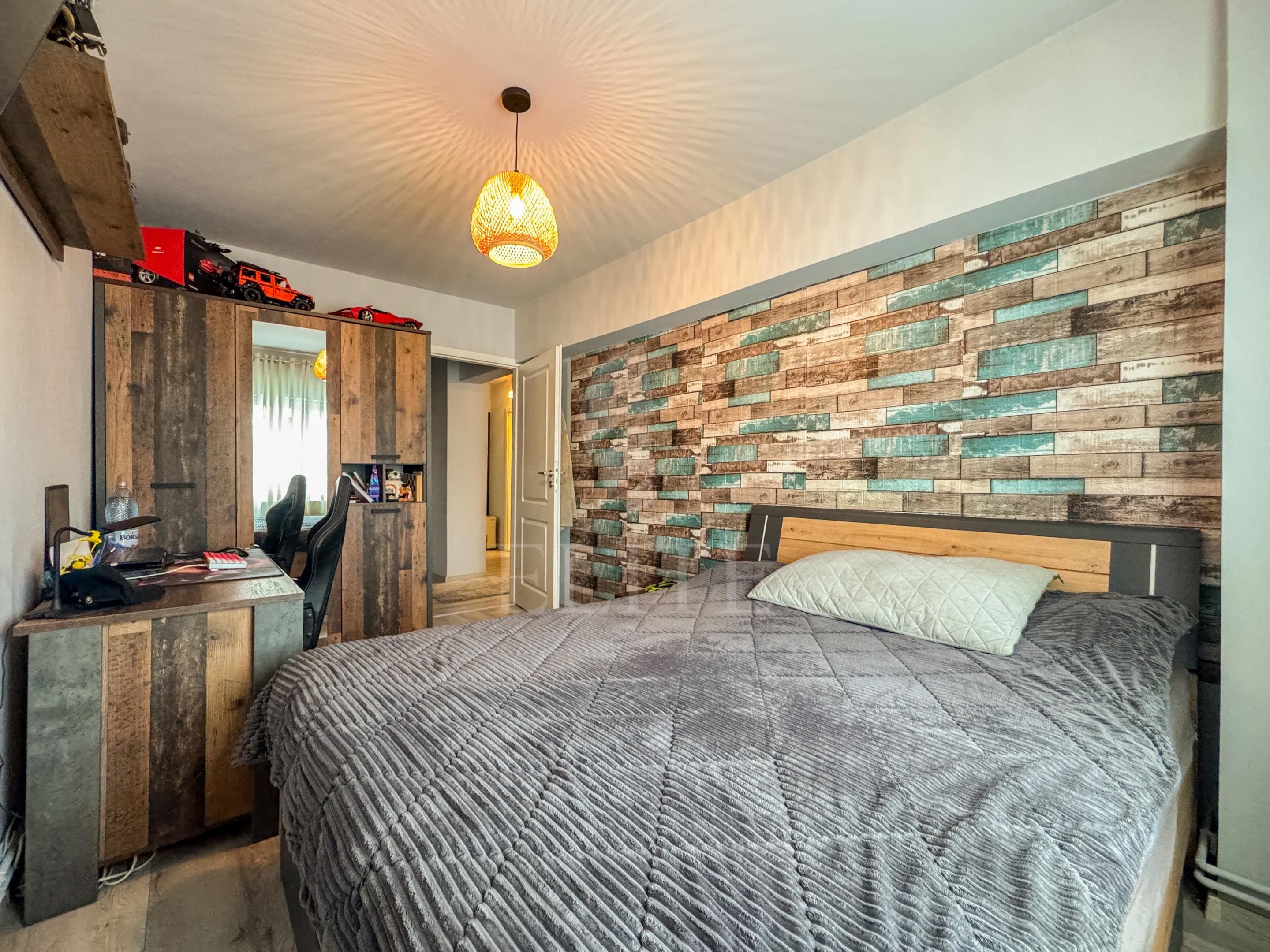 ELITE offers for sale apartment with 4 rooms, located in the neighborhood MANASTUR in the area CALEA FLORESTI. The apartment has an usable area of 83 mp and is positioned on the floor 5, in apartment block, exterior insulation. It is an detached apartment, confort 1, with separate kitchen, 2 bathrooms, 2 balconies. The interior is modern finish.It is for sale fully furnished. The property also has own central,double glazing windows, laminate flooring,modern tile/sandstone,metal front door.