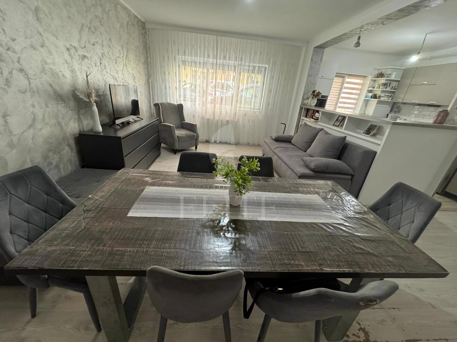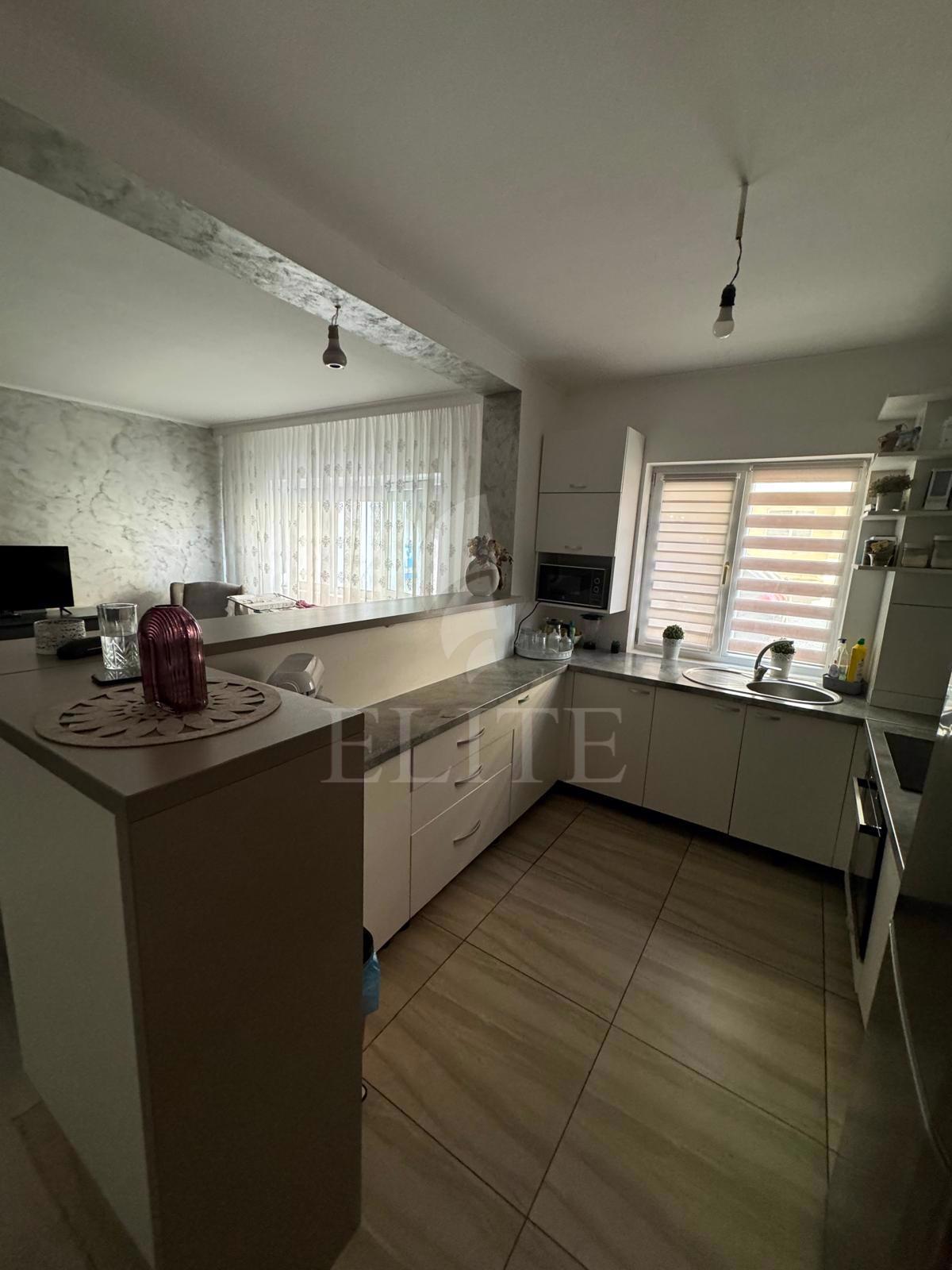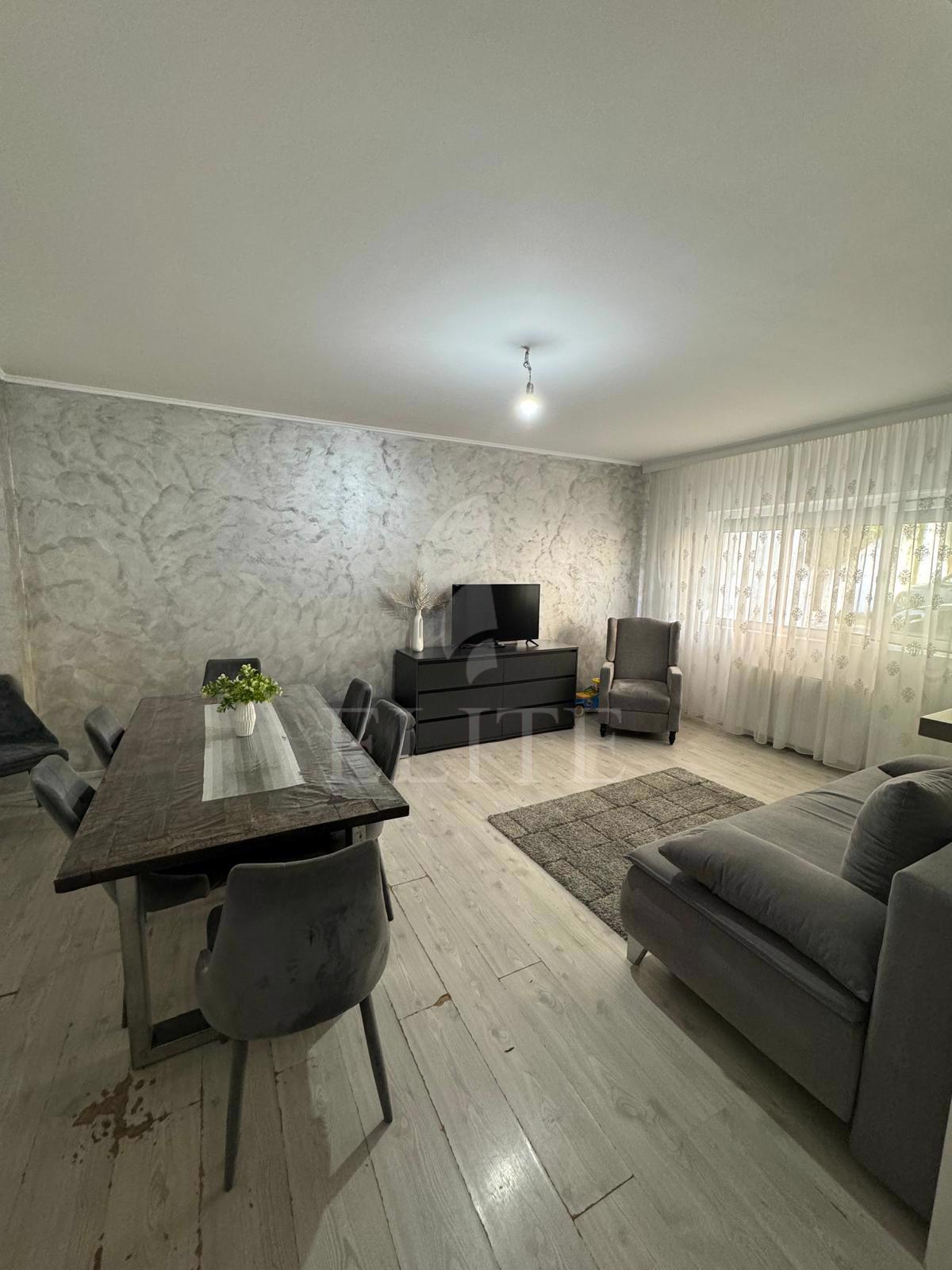 ELITE va ofera spre vanzare apartament cu 3 camere in construcție nouă, situat in cartierul FLORESTI CENTRAL zona STEJARULUI, fiind orientat sudic, Apartamentul are o suprafata utila de 78 mp si este pozitionat la parter, in bloc apartamente, cu izolație exterioară. Este un apartament semidecomandat, confort sporit, cu bucatarie open space,living, 2 dormitoare 2 bai, 1 debara spatioasa.. In interior este finisat modern.Se vinde utilat si mobilat complet. Imobilul dispune de centrală proprie,ferestre termopan,parchet laminat,faianta/gresie modernă,usa de intrare metalica. Apartamentul este dotat cu urmatoarele electrocasnice: cuptor microunde, mașină de spălat rufe, frigider, televizor, cuptor, plită, aragaz. Ideal pentru locuit!
