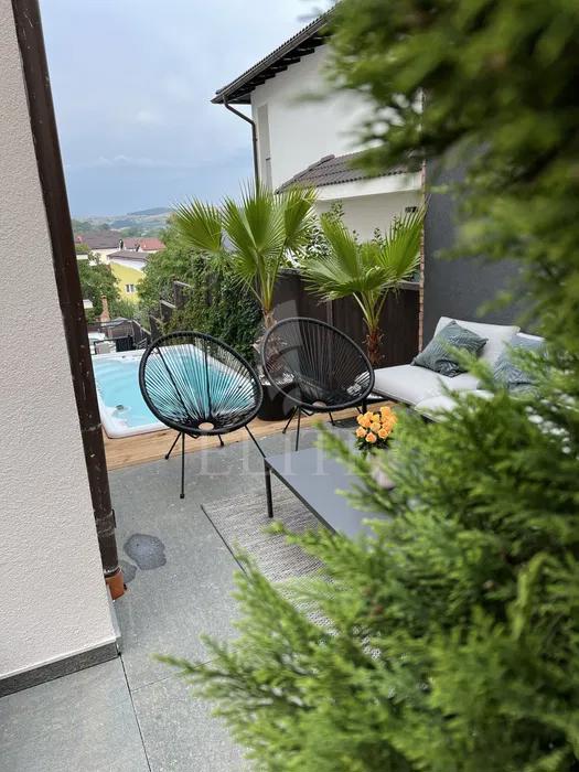 ELITE va ofera spre vanzare apartament cu 4 camere in construcție nouă, situat in cartierul GRUIA in zona STRAZII VANTULUI. Apartamentul este de tip penthouse de lux în vilă cu două unități locative. Apartamentul este ultrafinisat si se vinde mobilat. Este intr-o zona privata ( drum privat ) și exclusiv de case. Acesta are o suprafata utila de 79 mp + balcon 5 mp și este compartimentat astfel: 2 dormitoare in zona din spate , hol și o baie mare iar in zona din fata leaving generos , bucătărie închisă , șemineu / dressing , baie de serviciu și balcon cu orientare estică . Toate acestea la etajul 1. La etajul superior se află o terasă de 50 mp cu o priveliște minunată și zona de barbeque de-asemenea la etajul retras se află o cameră/ mansardă de 50 mp zona de relaxare cu baie și dressing Construcția imobilul atinge cele mai exigente cerinte privind materialele,/ poziția, calitatea finisajelor fiind ideal pentru o familie . Apartamentul dispune de centrala proprie, încălzire in pardoseala, geamuri termopan 3 sticle și 7 camere parchet lemn masiv , finisaje exclusiviste. Clădirea este construită la cele mai înalte standarde cu un aspect modern și exlusivist cu o panoramă deosebită . Apartamentul este situat intr o vilă cu 2 unități locative dispune și de curte comună cu piscină saună și zona de relaxare În prețul imobilului există un garaj la subsol și cramă de 50 mp cu baie și cămară precum și o curte în fața garajului.