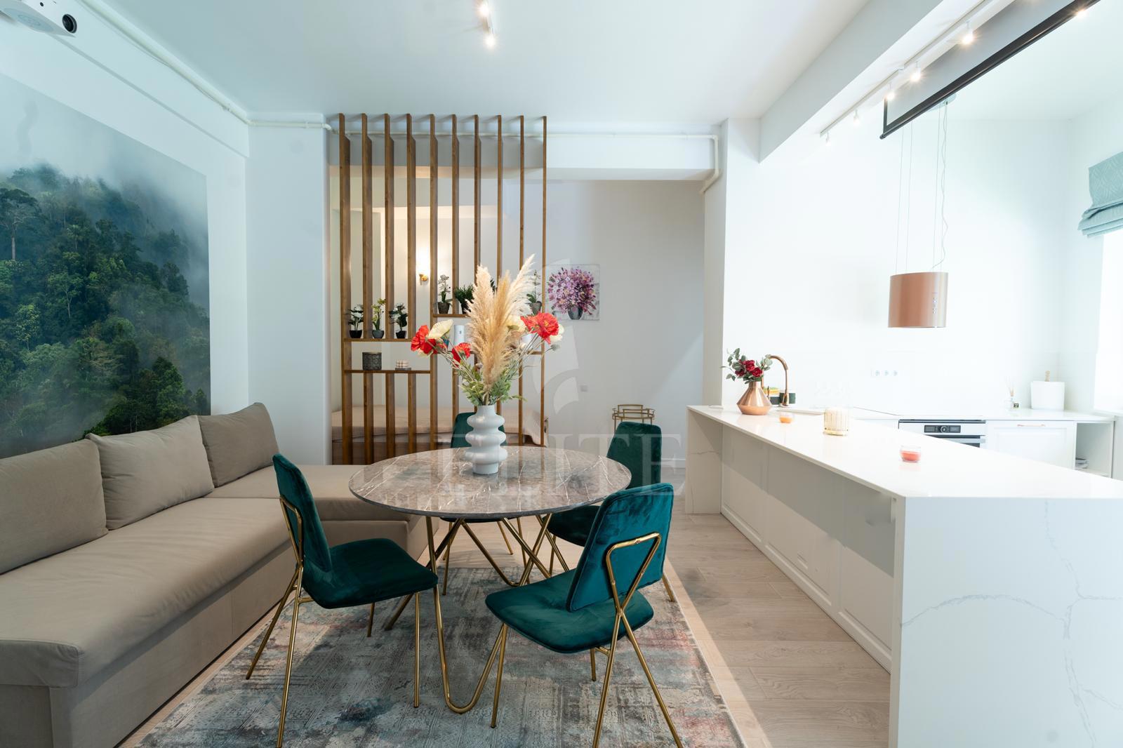 ELITE offers for sale apartment with 2 rooms in new construction, located in the neighborhood CENTRAL in the area SEMICENTRALA. The apartment has an usable area of 69 mp and is positioned on the parter, in apartment block, built in 2018, exterior insulation. It is an semi-detached apartment, confort increased, with open space kitchen, one bathroom, one balcony. The interior is modern finish.It is for sale fully furnished. The property also has own central,double glazing windows, laminate flooring,modern tile/sandstone,metal front door. An advantage of this property is that it has underground garage.