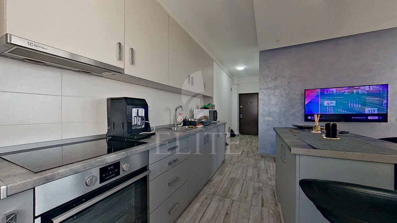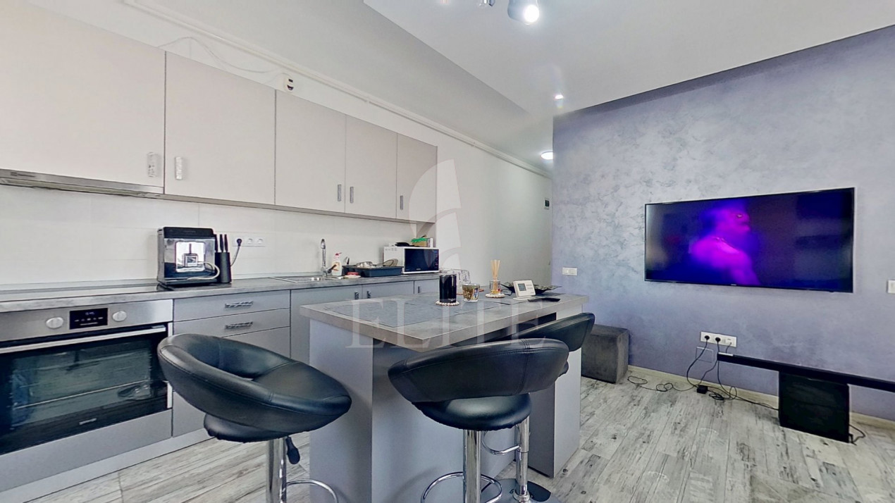 ELITE offers for sale apartment with 2 rooms in new construction, located in the neighborhood IRIS in the area OASULUI. The apartment has an usable area of 45 mp and is positioned on the floor 5, in apartment block, built in 2018, exterior insulation. It is an semi-detached apartment, confort 1, with open space kitchen, one bathroom, one balcony. The interior is modern finish.It is for sale fully furnished. The property also has own central,double glazing windows, laminate flooring,modern tile/sandstone,metal front door. An advantage of this property is that it has underground garage.