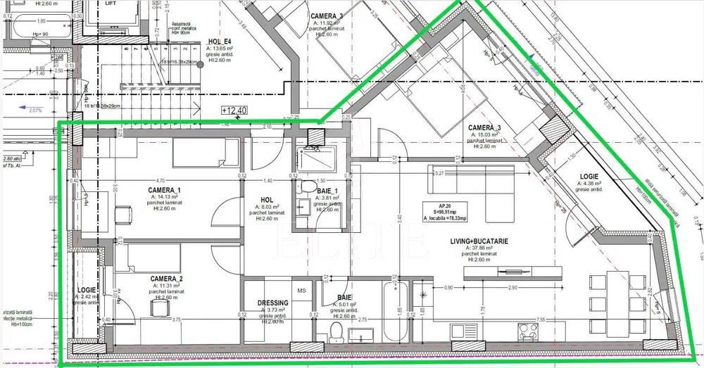 ELITE offers for sale apartment with 4 rooms in new construction, located in the neighborhood CENTRAL in the area SEMICENTRALA. The apartment has an usable area of 98 mp and is positioned on the floor 5, in apartment block, built in 2026, exterior insulation. It is an semi-detached apartment, confort increased, with open space kitchen, 2 bathrooms, 2 balconies. The interior is semifinisat. The property also has own central, underfloor heating,double glazing windows, metal front door. An advantage of this property is that it has underground garage.
