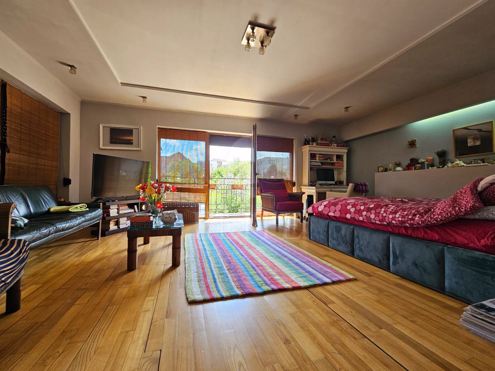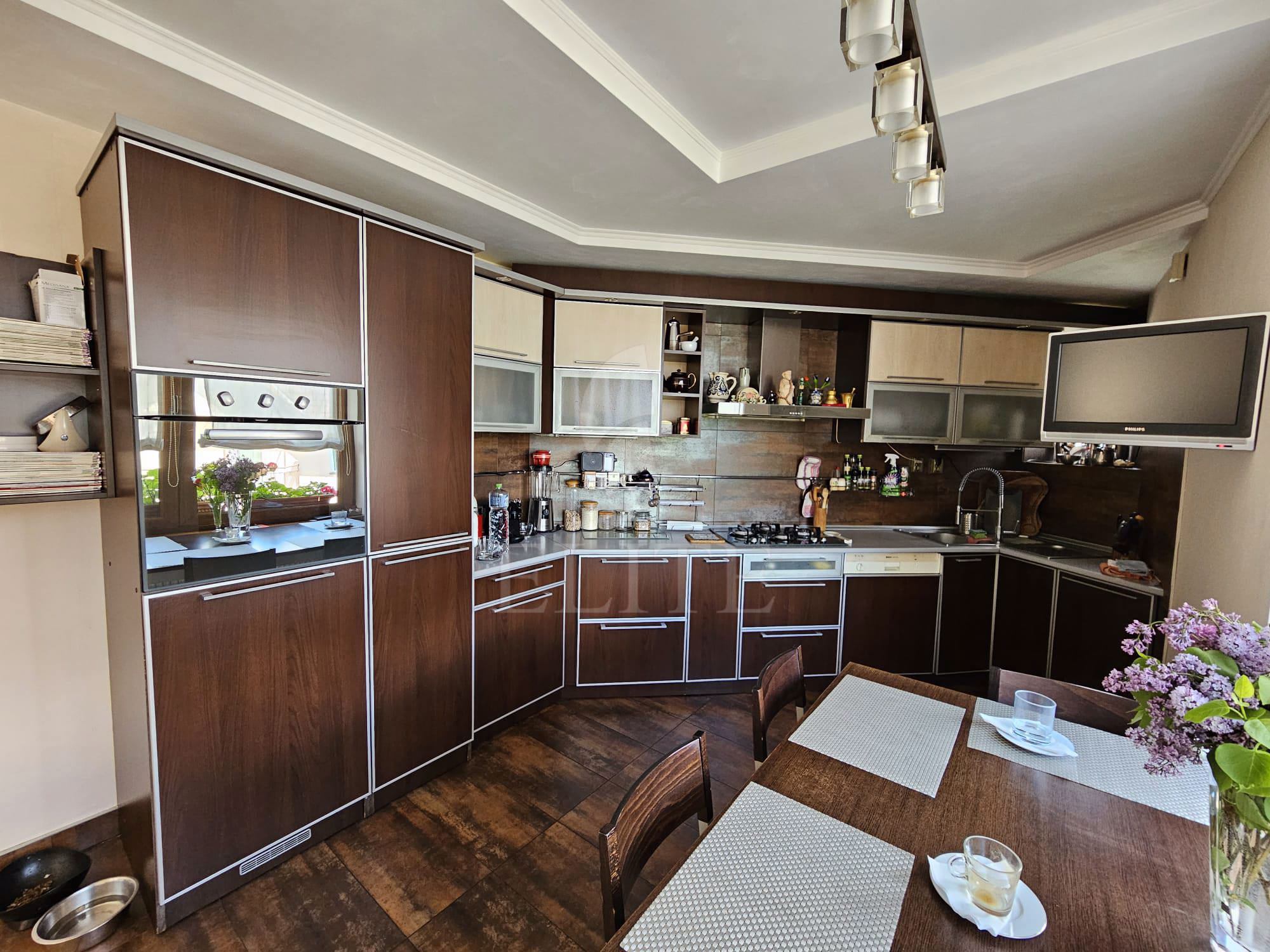ELITE offers for sale house with 6 rooms, located in the neighborhood ANDREI MURESANU in the area str. Becas. The house individuala with an area of 300 mp, land of 452 mp, house footprint 127 mp, front 14 is finisata, built in 2005 from caramida, exterior insulation. It is a house D+P+E+Pod with one kitchen, 4 bathrooms, 3 balconies, one terrace. The property also has current, water, sewer, gas, cable tv.It is for sale fully furnished, modern. Other facilities are air conditioning,double glazing windows, solid wood flooring,wood front door. The house is equipped with the following appliances: washing machine, dishwasher, refrigerator, TV, oven, hob.It is located in the vicinity of public transport da. An advantage of this property is that it has underground garage.