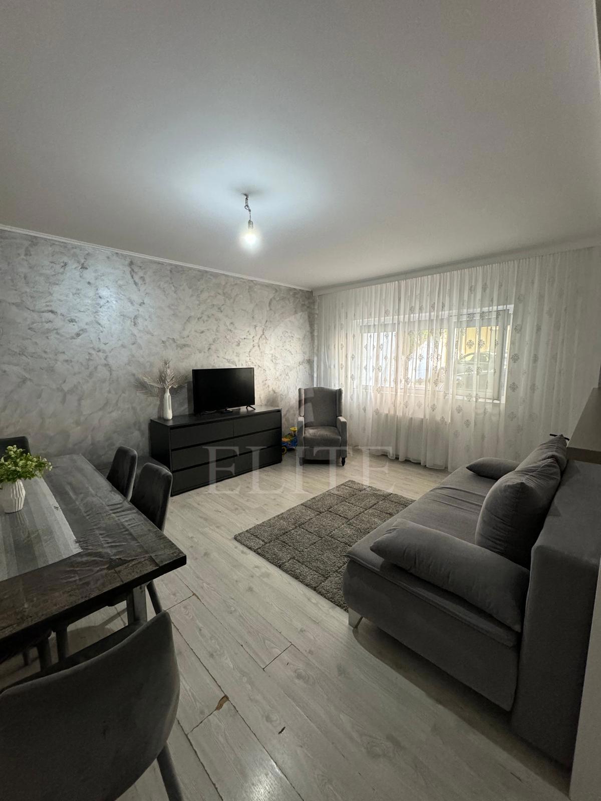 ELITE va ofera spre vanzare apartament cu 3 camere in construcție nouă, situat in cartierul FLORESTI CENTRAL zona STEJARULUI, fiind orientat sudic, Apartamentul are o suprafata utila de 78 mp si este pozitionat la parter, in bloc apartamente, cu izolație exterioară. Este un apartament semidecomandat, confort sporit, cu bucatarie open space,living, 2 dormitoare 2 bai, 1 debara spatioasa.. In interior este finisat modern.Se vinde utilat si mobilat complet. Imobilul dispune de centrală proprie,ferestre termopan,parchet laminat,faianta/gresie modernă,usa de intrare metalica. Apartamentul este dotat cu urmatoarele electrocasnice: cuptor microunde, mașină de spălat rufe, frigider, televizor, cuptor, plită, aragaz. Ideal pentru locuit!